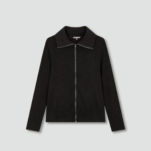 • JAJU Hairy Ribbed Zip-Up Cardigan – Black