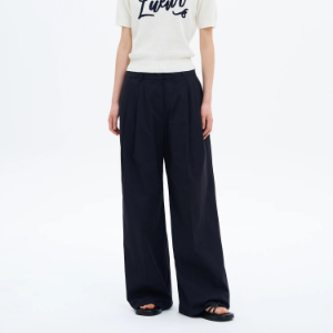8 seconds Cotton Two-Tuck Casual Pants — Navy