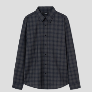 Theory Men Wool Irving Shirt - Charcoal Melange/Navy