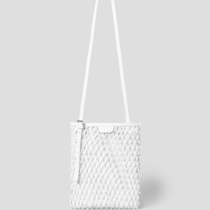 JUUN.J Mesh Leather Weaving Shoulder Bag – White