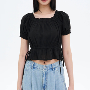8 seconds Square Neck Blouse — Black