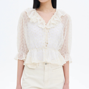 8 seconds Embroidered Frill Blouse — Ivory