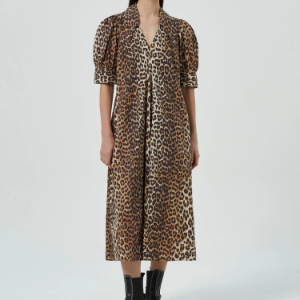 • GANNI Printed Cotton Poplin V-neck Long Dress - Brown
