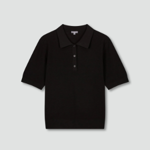 • JAJU Strong Twisted Yarn Collar Short Sleeve Knit – Black