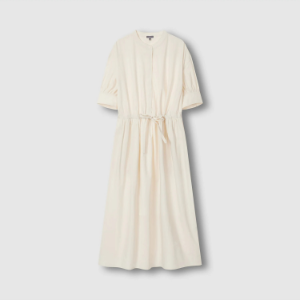 JAJU Cotton Shirt String Short-Sleeve Dress – Ivory