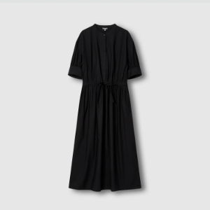• JAJU Cotton Shirt String Short-Sleeve Dress – Black