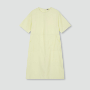 • JAJU Square Texture Stitch Short-Sleeve Dress – Yellow
