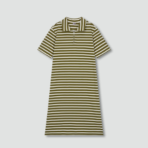 JAJU Cotton Collar Short-Sleeve Dress – Khaki
