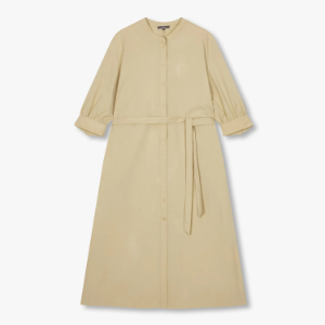 • JAJU Sleeve Shirring Shirt Dress – Beige