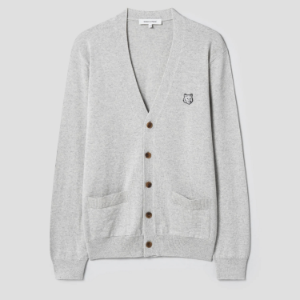 Maison Kitsune Men Tonal Fox Head Patch Regular Cardigan - Light Grey Melange