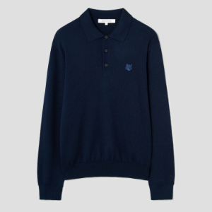 Maison Kitsune Men Tonal Fox Head Patch Polo Jumper - Ink Blue