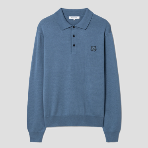 Maison Kitsune Men Bold Fox Head Patch Polo Jumper - Breton Blue