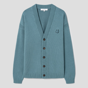 Maison Kitsune Men Bold Fox Head Patch Comfort Cardigan - Soft Teal