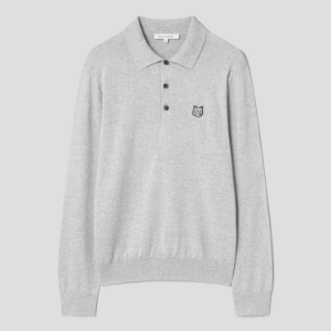 • Maison Kitsune Men Tonal Fox Head Patch Polo Jumper - Light Grey Melange