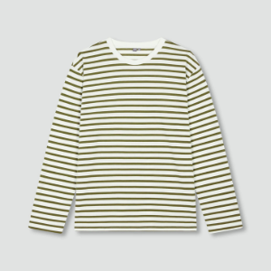 • JAJU Men’s Striped Cotton Long Sleeve T-Shirt – Olive/White
