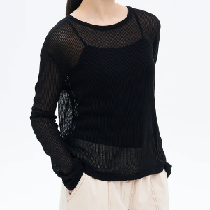 8 seconds Textured Long Sleeve Pullover — Black