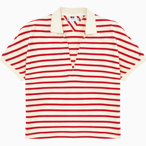 • TOMMY HILFIGER [Official Headquarters] Open Collar Striped Short Sleeve Polo Shirt