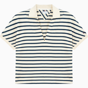 TOMMY HILFIGER [Official Headquarters] Striped V-Neck Short Sleeve Polo Shirt