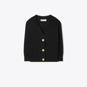 TORY BURCH Cotton Shrunken Cardigan – Black