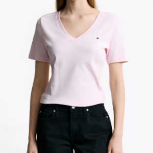 TOMMY HILFIGER [Official Headquarters] Slim V-neck Rib T-shirt