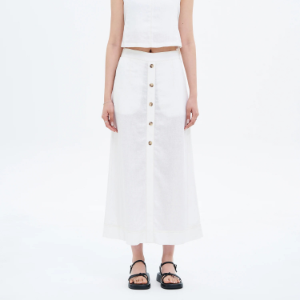 • 8 seconds Button Detail A-Line Long Skirt - White