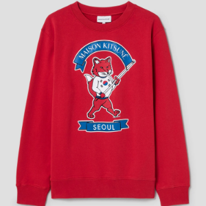 • Maison Kitsune Unisex Korean Fox Printed Regular Sweatshirt - Plum Red