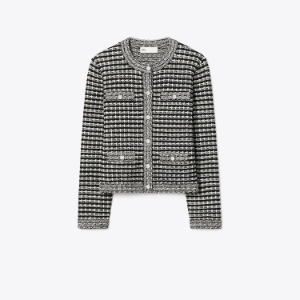 • TORY BURCH Kendra Jacquard Cardigan – Black