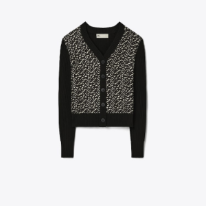 TORY BURCH Silk-Front Wool Cardigan – Black