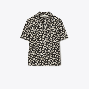 TORY BURCH Lily Cotton Camp Shirt – Black