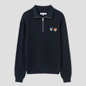 • Maison Kitsune Men Double Bold Fox Head Half Zip Comfort Sweatshirt - Anthracite