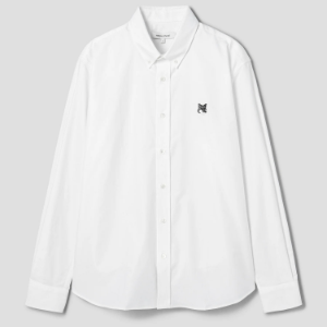 • Maison Kitsune Men Button Down Casual Shirt With Grey Fox Head Patch In Oxford - White