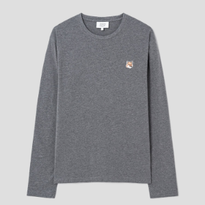 Maison Kitsune Men Fox Head Patch Regular Long Sleeves Tee-Shirt - Dark Grey Melange