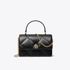 TORY BURCH Kira Diamond Quilt Mini Top Handle Chain Wallet – Black