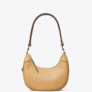 TORY BURCH T Monogram Pebble Crescent Bag – Cream