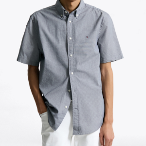 TOMMY HILFIGER [Official Headquarters] [Regular fit] Poplin Houndstooth Short Sleeve Shirt (T12F3WSH150MT10GY)