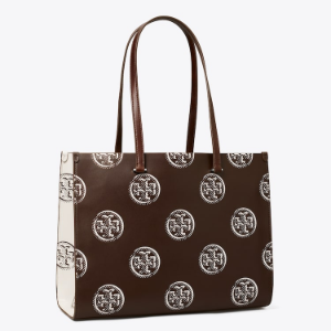 TORY BURCH T Monogram Contrast Embossed Tote – Chocolate