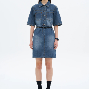 • 8 seconds Shirt Style Short Sleeve Denim Dress — Blue
