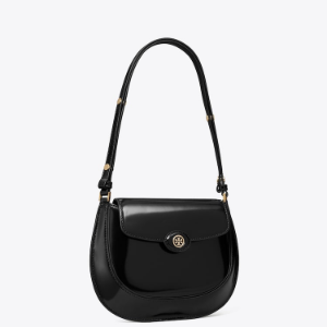 TORY BURCH Robinson Spazzolato Small Flap Bag – Black