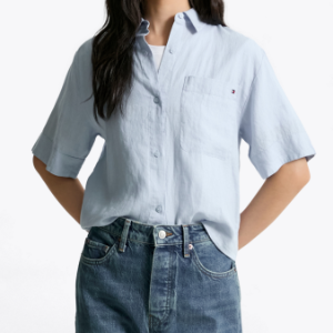 TOMMY HILFIGER [Official Headquarters] Boxy Crop Linen Shirt