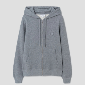 Maison Kitsune Men Bold Fox Head Patch Comfort Zipped Hoodie - Medium Grey Melange