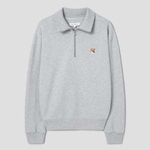 Maison Kitsune Men Fox Head Patch Comfort Half Zip Sweatshirt - Light Grey Melange