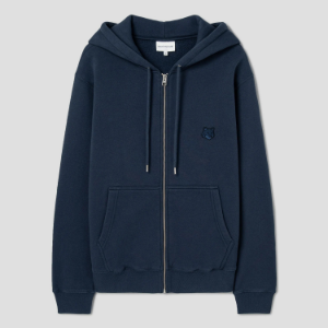 • Maison Kitsune Men Tonal Fox Head Patch Comfort Zipped Hoodie - Ink Blue
