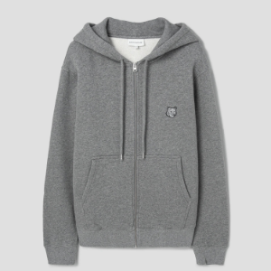 • Maison Kitsune Men Tonal Fox Head Patch Comfort Zipped Hoodie - Medium Grey Melange