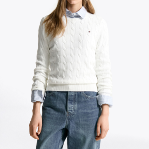 TOMMY HILFIGER [Official Headquarters] Cotton Cable Crewneck Sweater