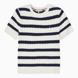 TOMMY HILFIGER [Official Headquarters] Cable Crew Neck Short Sleeve Sweater