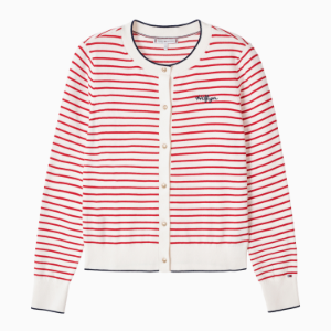 • TOMMY HILFIGER [Official Headquarters] Striped Logo Crew Neck Cardigan
