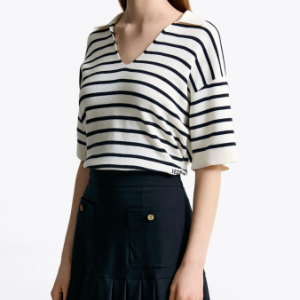 TOMMY HILFIGER [Official Headquarters] Striped Open Collar Sweater