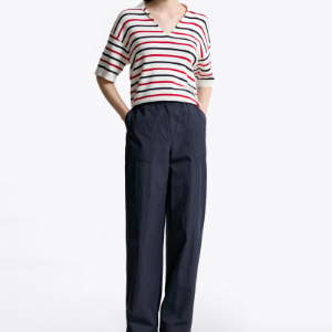 TOMMY HILFIGER [Official Headquarters] Striped Open Collar Sweater