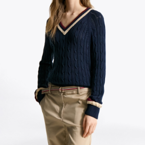 TOMMY HILFIGER [Official Headquarters] Varsity Cable V-Neck Sweater