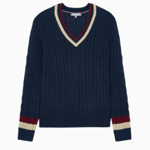 TOMMY HILFIGER [Official Headquarters] Varsity Cable V-Neck Sweater